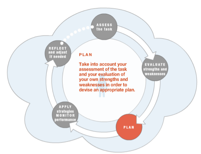 The diagram below shows you one example of the metacognitive cycle. Hover over the individual skills to learn more.